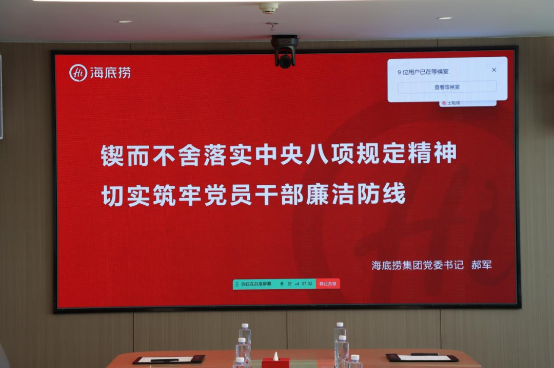 海底捞集团紧密结合餐饮行业实际和企业高质量发展要求,围绕加强企业内部作风建设,提升管理效能和服务质量目标,精心研究谋划,推动深入贯彻中央八项规定精神学习教育活动有序开展。