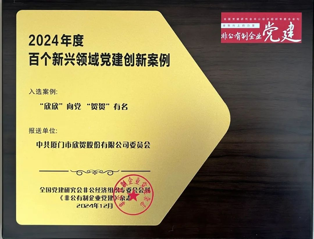 经厦门市委社会工作部推荐,全国党建研究会非公经济组织专委会会刊、“中国非公党建第一刊”—《非公有制企业党建》杂志发布“2024年度百个新兴领域党建创新案例”名单,欣贺股份有限公司的《“欣欣”向党 “贺贺”有名》党建工作案例成功入选