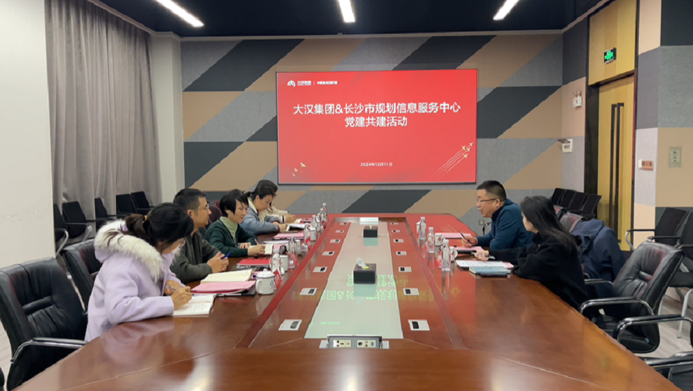 12月11日下午,长沙市规划信息服务中心党总支书记欧景雯一行到访大汉集团,开展党建共建活动。