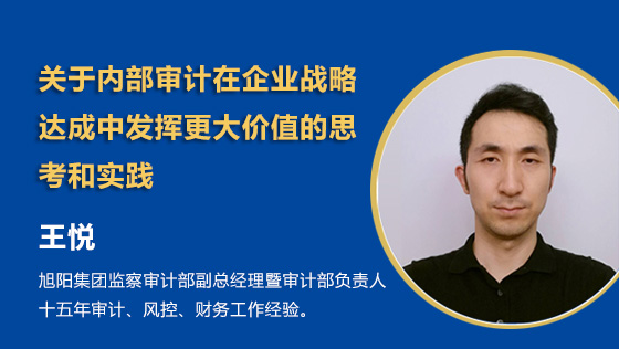 说起内部审计的话题,每家企业各自都有着对内审岗位职能的不同的理解、定位和要求,随着企业发展日新月异,如何使内审部门与内审工作,更好地成为在企业战略达成中的有效助力,实现价值最大化?本期晚间课程,特邀旭阳集团监察审计部副总经理暨审计部负责人王悦进行授课,王老师把内审心得以及亲自经手的项目案例相结合,精彩演绎对内审工作的战略性思考和实践