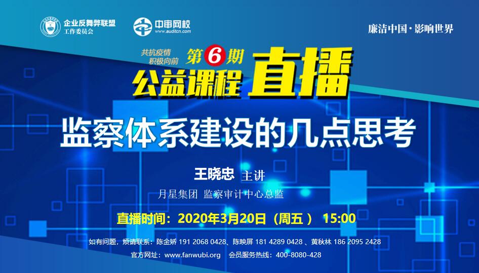 第六期在线课程我们邀请协会理事单位月星集团王晓忠与大家一起走心细述监察体系中文化建设的重要性、体制建设实施方法以及需要关注的重点。本期直播课堂人气高涨,互动紧密,下面让我们再次感受课程的心得体会和宝贵经验