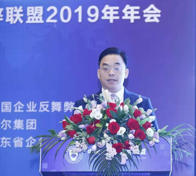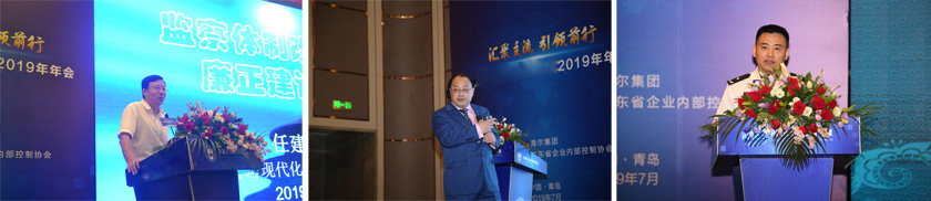 汇聚主流,引领前行,廉洁中国、影响世界!2019年7月11至12日,由企业反舞弊联盟工作委员会(广东省企业内部控制协会)主办、海尔集团承办的企业内部控制协会2019年会在青岛隆重召开,协会会长周清平、常务副会长兼秘书长邱银河、副会长林斌、刘国华、袁亮亮、杨德赋,海尔集团监察管理委员会主任(副总裁)王雷,以及来自电商、零售、物流、医药、家居、金融保险等行业的300余名联盟成员代表出席大会。会议分别由协会监事长、阿里巴巴集团纪委书记和富强,联盟北方区召集人、泰康集团法律合规部诉讼处经理兼案件管理总监张大巍,协会副秘书长、调查专业委员会常务副主任谭载鸿主持。