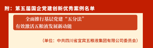 8月25日,“第五届国企党建创新优秀案例”名单公布,五粮液党建案例成功入选。