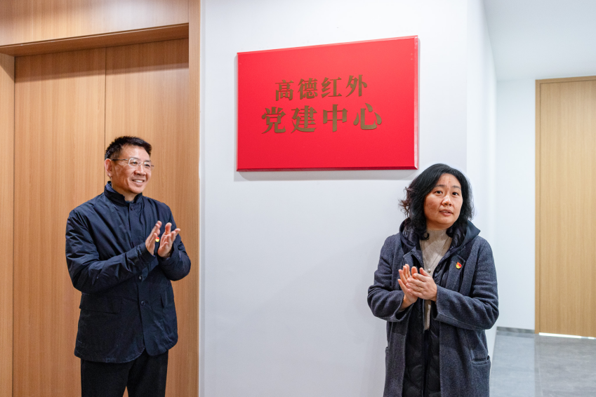 洪山经济开发区管理委员会副主任苏嫣,高德红外党委书记、董事长黄立为党建中心揭牌;东湖高新区总工会副主席程琳、高德红外总经理张燕为职工之家揭牌。