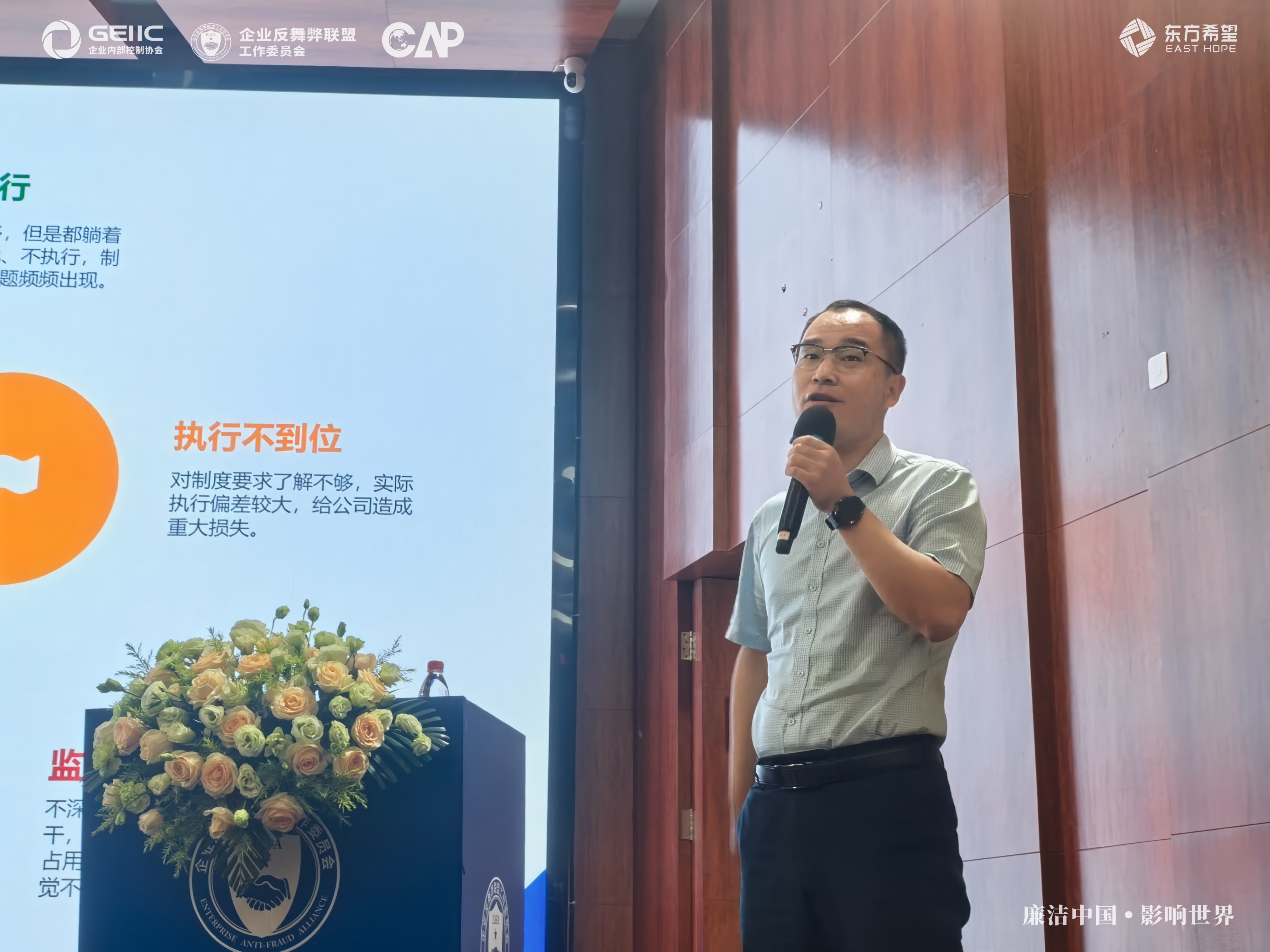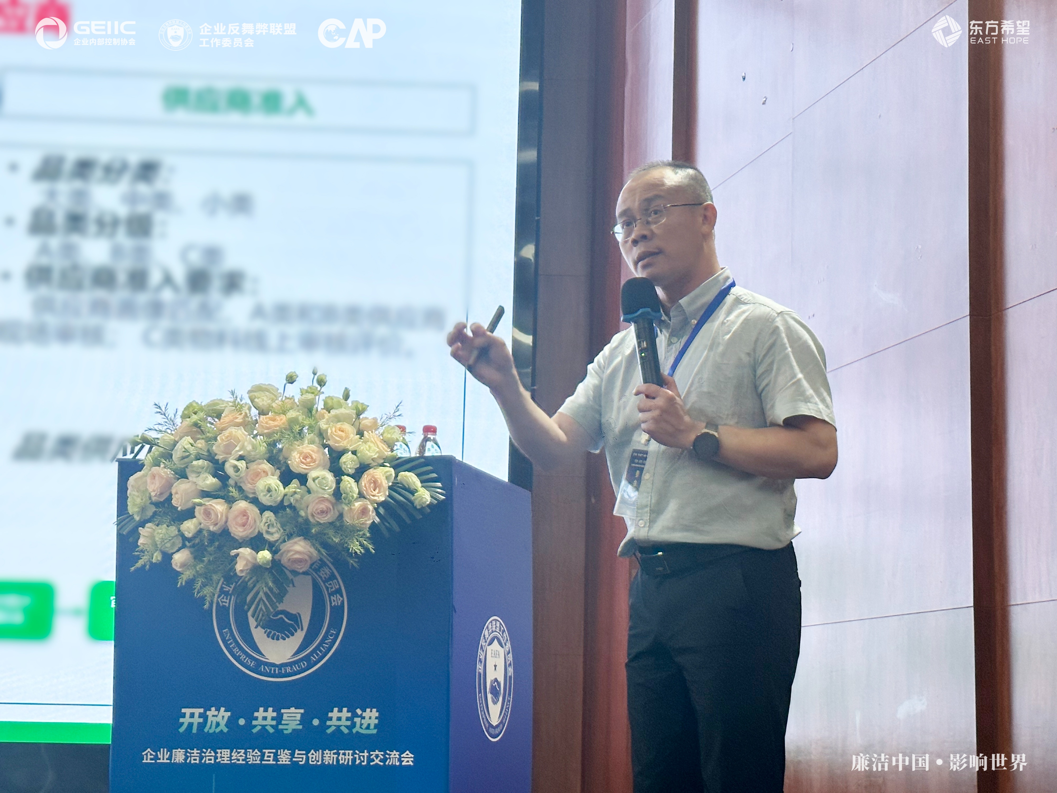 会上,东方希望集团党支部书记、廉正合规总经理张轮大围绕“党建引领,打造清廉企业” 主题,深入阐述东方希望在党建与廉洁治理融合的创新实践。以党组织监督为核心抓手,将其与反舞弊工作紧密结合、协同推进,形成 “监督 - 防控 - 处置” 的闭环管理体系,确保廉洁政策精准落地、高效执行,为各企业提供了党建与廉洁治理深度融合的标杆范例。旭阳集团正高级监察师兼监察部经理吴晓柱结合实际案例围绕生产型企业廉洁管理全场景作深度分享,聚焦信息化技术在廉洁风控中的实战应用,解析采购供应链廉洁管控的创新实践与销售售后环节的防控策略,拆解生产制造风险识别要点,并针对性输出调查谈话的禁忌规避指南与问题博万体育官网的解决方案,为企业廉洁治理提供兼具实操性与创新性的思路参考。