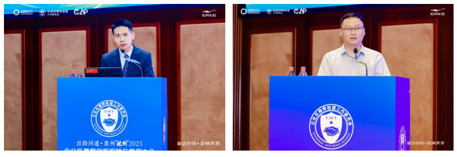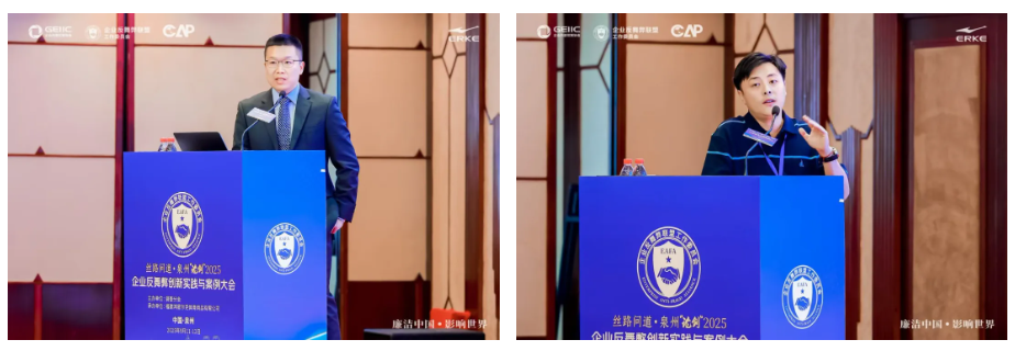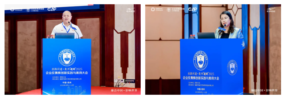 大会上,泉州市公安局鲤城分局警官受邀出席,并分享了职务犯罪实战案例,同时围绕职务侵占、非公受贿、资金挪用、盗窃等罪名,进行了专业解读与法律阐述,为参会代表提供了极具价值的法律参考。鸿星尔克审计中心高级经理林福川、海尔诉讼及反舞弊部风险预防总监曹琳、达能中国商业道德合规高级经理赵聃、美团内控产品总监卜一等专家代表以“ai 赋能企业反舞弊实践”“数字化转型驱动企业诚信生态构建”等为核心主题作深度分享。他们系统拆解了 ai 技术在舞弊行为智能识别、风险实时预警中的应用逻辑,以及数字化转型如何推动反舞弊工作从“事后查处”向“全链条防控”升级的实践路径,全面呈现了技术创新在反舞弊领域的落地成果,凸显了以技术创新破解舞弊隐蔽化、跨区域化等难题、提升企业治理效能的核心价值,更为参会企业提供了可借鉴、可复制的技术应用模板,为行业反舞弊工作的智能化升级提供了务实指引。